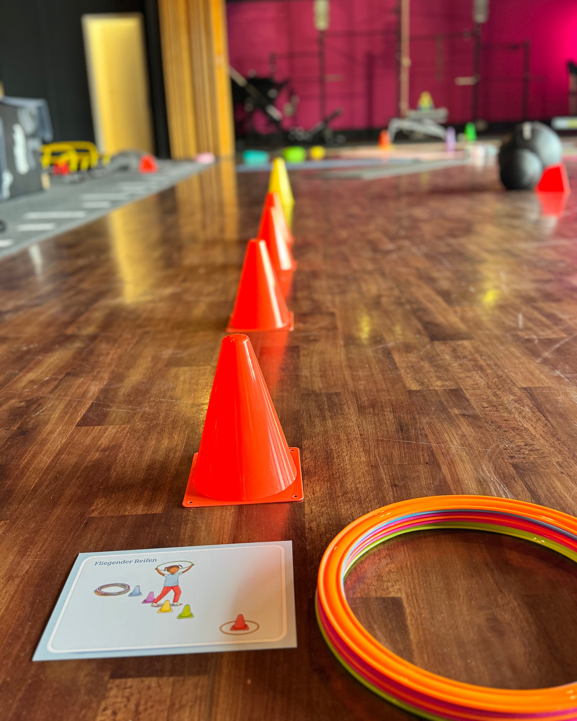 Kein klassisches Kinderturnen, sondern ein pädagogisch aufgebautes Training, das Kinder spielerisch fördert. In altersgerechten Kraftzirkeln üben die Kleinen z. B. Kniebeugen, Balancierübungen oder Kletterbewegungen. Dazu kommen Spiele, Challenges und Bewegungsaufgaben, die Spaß machen und gleichzeitig Kraft, Koordination, Ausdauer und Beweglichkeit entwickeln.